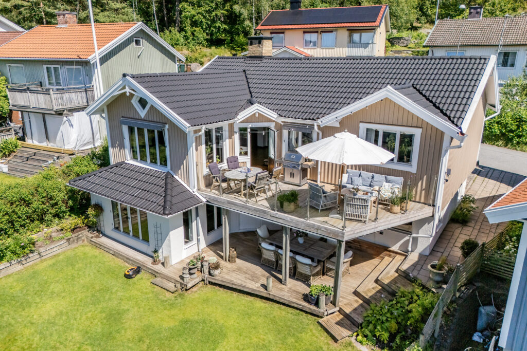 Unika drönarbilder ger en spektakulär överblick över bostaden och omgivningarna – en vy som verkligen sticker ut och väcker intresse.